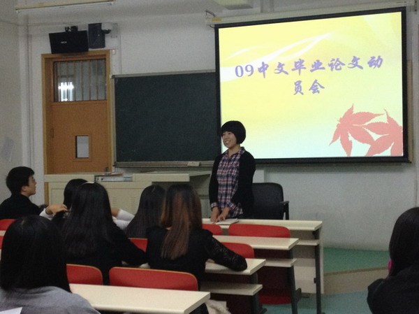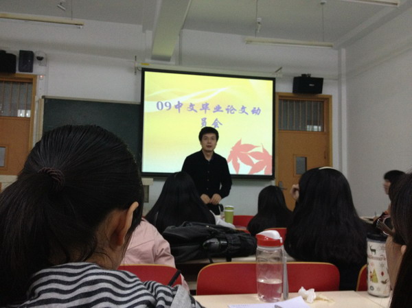 2012年10月12日周五晚6:30—7:30老王论坛 09级中文班在端升楼310举行了毕业论文动员大会。会议由张彦老师主持,徐文贵老师参加。此次会议对毕业论文工作进行了部署,并对同学们进行了具体而细致的指导。