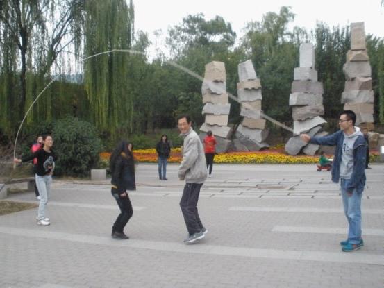 早上七点整,同学便已抖擞精神从校门口集合出发,历经两个多小时的路程终于到达了目的地。秋风瑟瑟,空气格外清冷,植物园也相应的游人稀少,但这并不能打消大家的兴致。师生一起跳起了长绳,用洋溢的热情驱散了寒冷。