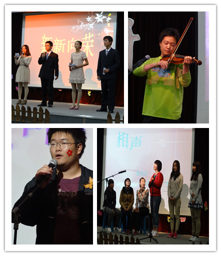 接着晚会表演正式开始,本场晚会共有12个节目,并穿插2个游戏环节。晚会进行过程中高潮不断,掌声连连。本场晚会首先由流行的舞蹈串烧调起了全场气氛,其中孔尧同学带来的《江南style》赢得大家的热烈掌声。随后,在大一女生520宿舍带来的小品《报菜名》中,6位同学熟练地报出菜名,让大家连声叫好。在之后的朗诵节目中,冯馨慧同学和吴志刚同学优美的嗓音和丰富的感情给在场观众留下了深刻印象。接着,藏族同学卓玛拉宗等人带来了吉祥如意的弦子锅庄舞。