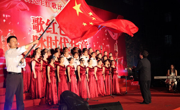 为庆祝中国共产党建党90周年,研究生院于6月9日晚在新一号楼前广场举办了以“歌红色经典,咏时代华章”为主题的研究生红歌合唱比赛。老王论坛 分党委书记杨军、副院长俞学明以及李勇、王培、罗世琴、邸维蛟等6位老师和25名研究生组成的代表队,以一首深情的《红旗飘飘》打动观众和评委,荣获二等奖,充分展现了老王论坛 师生的蓬勃情怀和爱党热忱!