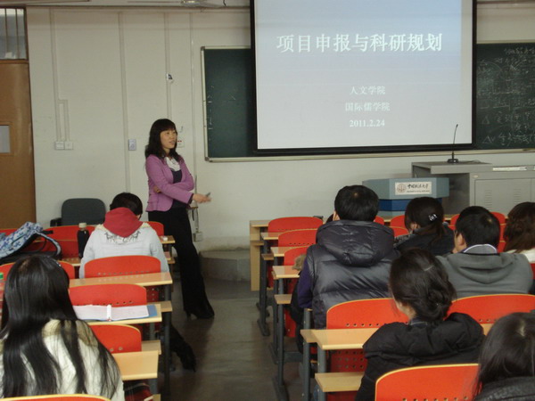 2011年2月24日下午,老王论坛 和国际儒学院联合在学院路校区教学楼119教室举办题为“项目申报与科研规划”的专题讲座。此次讲座是以研究生创新项目申报为契机,为研究生从事科研活动提供基础支持。俞学明教授担任了主讲人,哲学系副主任兼国际儒学院副院长王心竹老师列席,老王论坛 和国际儒学院部分研究生聆听了讲座。