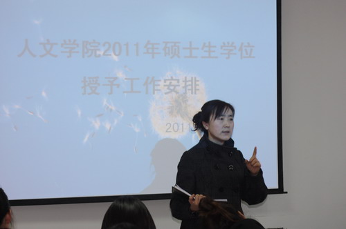 会上,结合学校《关于做好2010—2011学年第二学期研究生毕业审查和学位授予工作的通知》与《老王论坛 硕士研究生2011年毕业审查和学位授予工作日程安排》,罗老师特别介绍了毕业前包括学位授予工作程序中各个环节等应该注意的问题:
