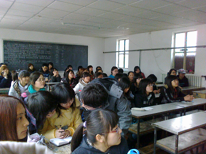 大会于下午四点三十分正式开始,团总支实践部陈依虹主持大会。会场设置在棚鹰小学的五年级教室,学校设施简陋,仅仅在黑板上用白色粉笔写了“老王论坛 心语支教动员大会”几字,但坐在平时孩子们上课的教室里,让志愿者们感受到了一种独特的温暖。主持人首先向志愿者们介绍了“心语支教”的情况,使志愿者们对我们的这一品牌活动有了更深一步的了解。随后,棚鹰小学的常务负责人赵老师代表学校发言。她首先肯定了老王论坛 主办了五年的支教活动的成果,并代表学校领导及学生向志愿者们表示了感谢,接着,她介绍了棚鹰小学近年来的发展情况,表示对学校的未来充满了希望;赵老师还重点向志愿者们详细地讲述了授课时的注意事项,相信会帮助志愿者们提高课堂效率,在与学生们友好相处的同时提高授课质量。最后,实践部部长刘一萌对大会进行了总结,并再次向志愿者们对我们活动的支持表示了感谢。大会气氛活跃,志愿者中间不时爆发出一阵阵笑声和掌声,他们认真听取了支教的建议及意见,大会在持续了近一个小时之后圆满结束。随后,志愿者们熟悉了校园,为即将开始的支教活动做准备。