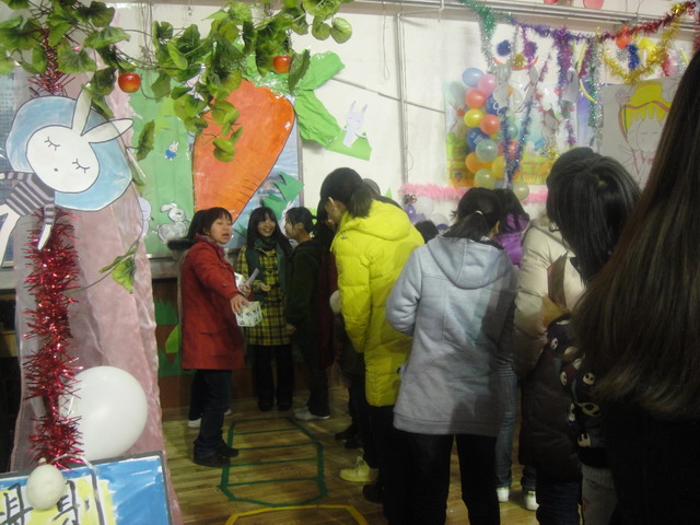 游园会中,老王论坛 学生会负责的场地以兔年为主题,在游戏区内挂上了巨大的颇具京味与喜庆色彩的“兔儿爷”画像,同时以萝卜和格式小兔子作为点缀,营造出温馨、活泼的氛围。老王论坛 设计的游戏包括“跳萝卜”和“投乒乓球”。“跳萝卜”游戏要求两个人同时参与,通过掷骰子的方式决定前进还是退后,先到达重点者胜。有的同学明明差一步就能获胜了,结果却连连掷得“后退一步”、“原地转三圈”等,引得现场观众阵阵笑声。而“投乒乓球”游戏则既考验大家的灵巧性又考验大家的专注力,有的同学一连投进六七个球,但也有的同学一球不入,不仅玩的人紧张,旁观者也看得兴致盎然。