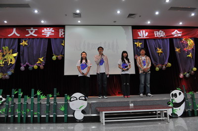 从“最初的梦想”到“最后一个夏天”,整台晚会以毕业班同学的节目为主,毕业生同学倾情唱响离歌,韩语歌曲、原创歌曲“不完美的完美”、独唱、合唱等用歌声表达离别之情,短剧引爆全场笑声,合唱点燃爱国激情,舞蹈“NOBODY”带动全场热情,台上台下互动热烈。05级哲学班主任李虎群老师更是带领全班同学表演了一曲琴歌合唱——“阳关三叠·军都版”,古风雅韵,表达了毕业生们对老师、同学们的依依不舍之情。低年级的同学们也使上了浑身解数,务求使师兄师姐们留下最美的回忆,热情奔放的舞蹈“深度”、歌曲“又一年又三年”、“再见”,获得了满堂彩。研究生同学也带来了他们的节目,京剧“忆秦娥·娄山关”,原创诗朗诵“哲学部落”,以此对各位师长送上真挚的感谢。康晨宇老师更以优美的唱腔为09届毕业生们深情地演唱了一曲“祝你好运”,为他们送上祝福。