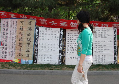 团总支主办的这一次诗歌书法展为法大校园增添了些许文学气息,许多同学走到展板前,会停下脚步,细细地读那些来自我们自己的原创诗歌,感受着法大校园里的那份人文气息。