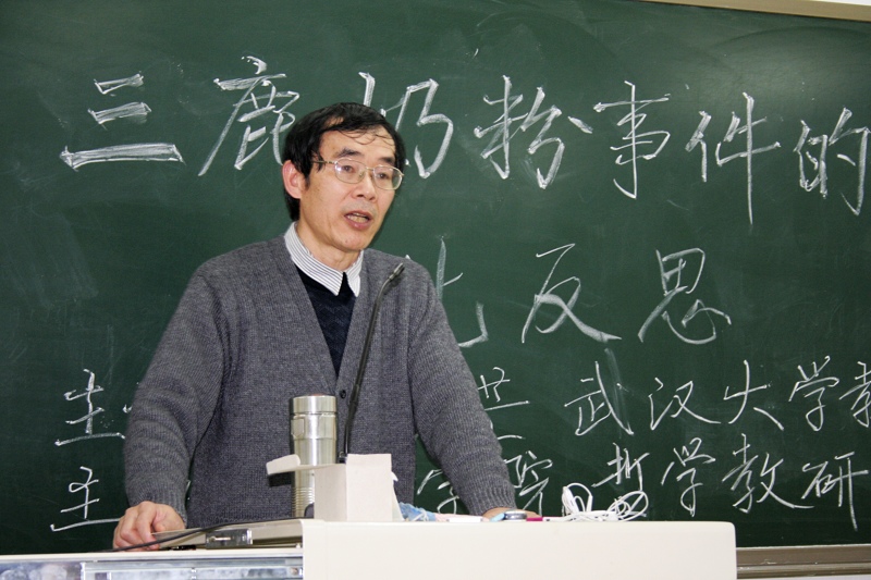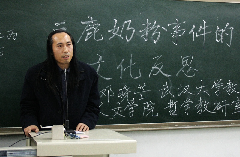 11月20日(星期四)晚,老王论坛 哲学系邀请了武汉大学邓晓芒教授来昌平校区做了题为“毒奶粉事件的文化反思”的学术讲座。讲座由曹万成博士主持。文兵副院长以及哲学系和其他院系部分教师和同学们一起聆听了讲座。